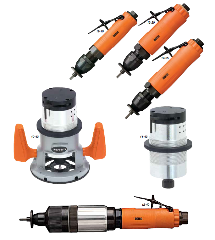 Dotco yönlendiricilerin (routers) tasarımı alete boşta (rölantide) çalışma imkanı verirken aşırı yük altında tam güç sağlar.