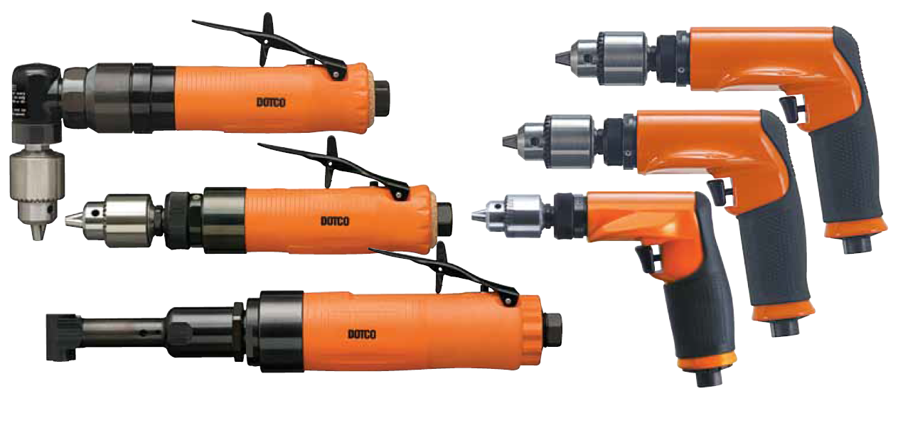 Dotco matkaplar, havacılıktan, petrol alanları ve rafinerilerine kadar çeşitli günlük uygulamalarda kullanılır. Kabzalı, düz saplı ve dik açılı olmak üzere 3 modeli vardır. Bu gruptaki matkaplar 0.3 – 1.5 HP arasındadır.